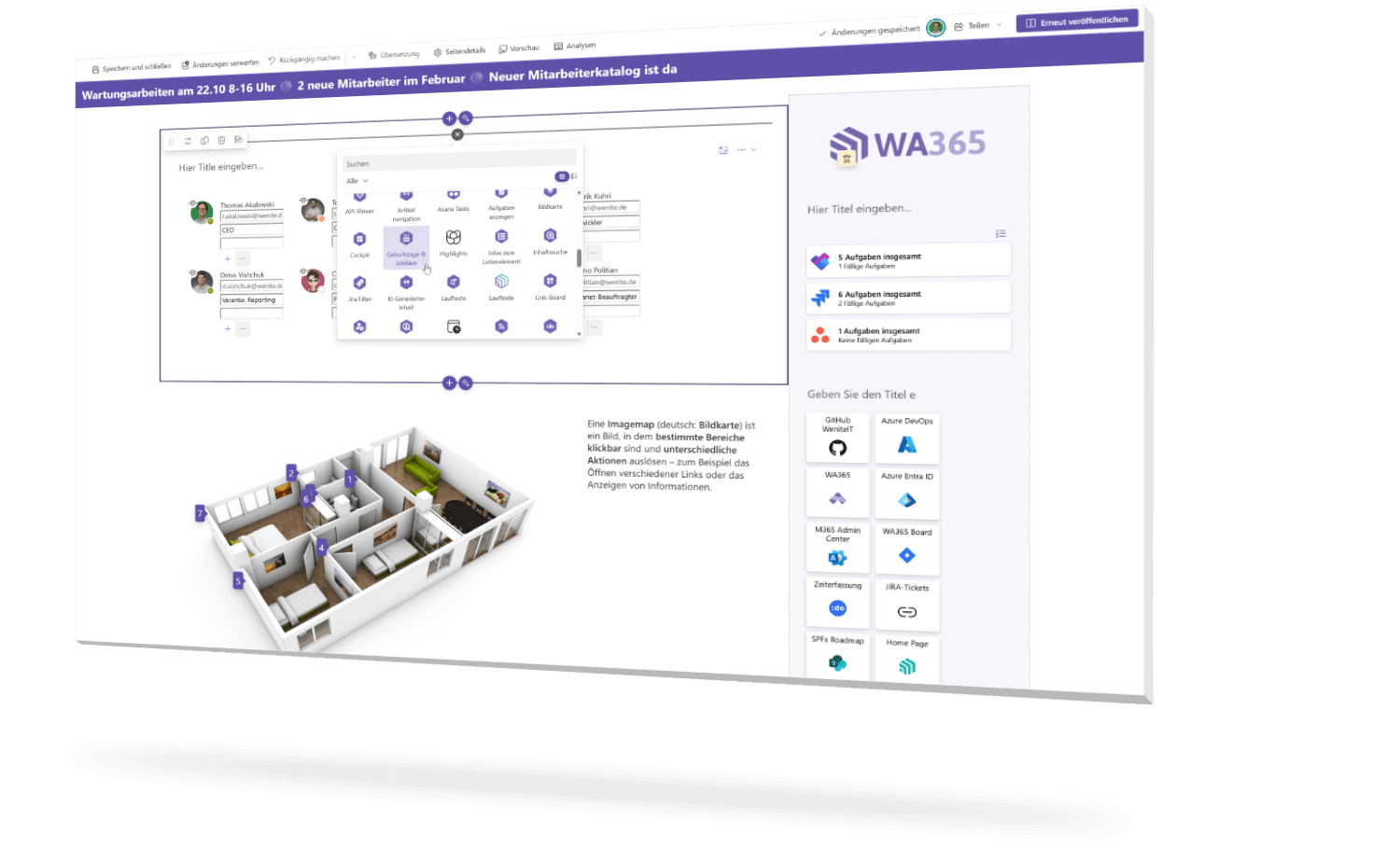 Fügen Sie ansprechende und funktionale Webparts hinzu, die Inhalte dynamisch darstellen und die Benutzerinteraktion erhöhen.